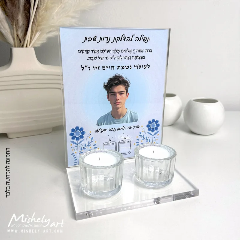 מעמד אקרילי - פרספקס שקוף להדלקת נרות שבת לעילוי נשמת