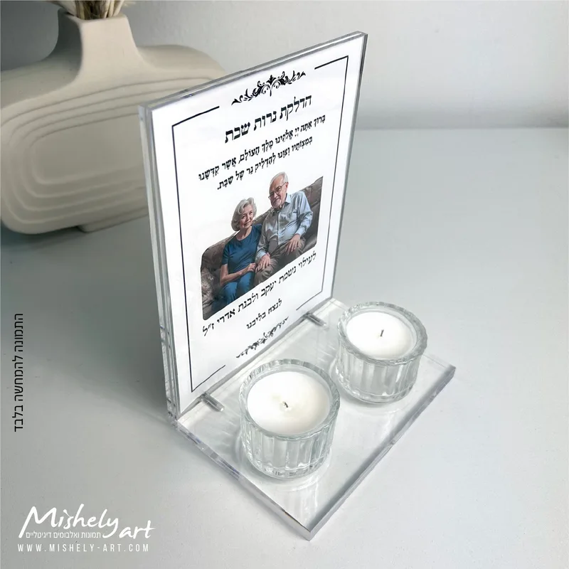 מעמד אקרילי - פרספקס שקוף להדלקת נרות שבת לעילוי נשמת